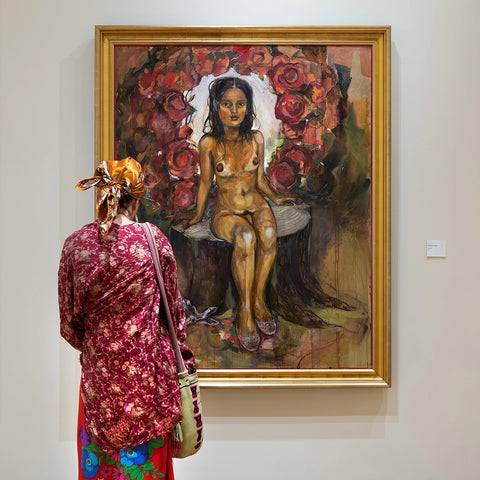 To powder her nose, she peddles her ass ~ "blowing" her beauty in the looking glass.