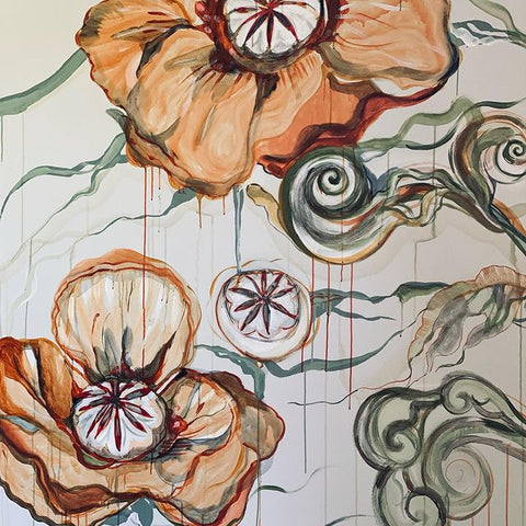 "Peregrine Honig has just completed a mesmerizing poppy mural that adorns the living room walls of our historic home, the Nadeau House, in Kansas City's Museum District.