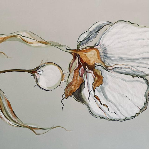 Honig addressed and preserved existing pigment with rococo elements while transitioning the full botanical season across the walls. The image reflects over the mirror-framed mantle piece and brings a fresh perspective to the timeless and politically charged flower, blending historical architecture with contemporary material. The mural's placement harmonizes perfectly with the expansive walls and natural lighting of the home."