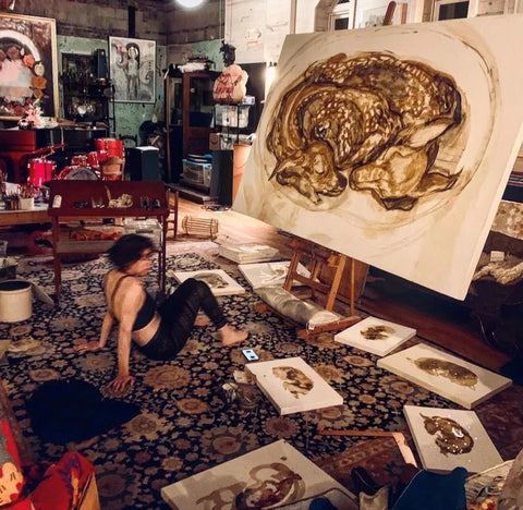 We dress death in lilies and bronze the names of our dead sons on walls. we erect altars of toys and hold candlelight vigils to express hope. my twin fawns sleep endlessly on their baby blue block in my studio. the twins never opened their eyes yet their wondrous fatality evokes an acceptable alternative to death.